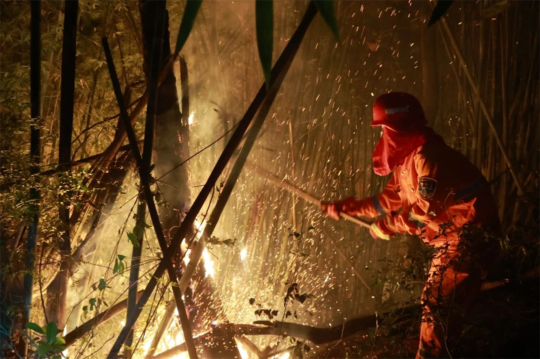 现场火势凶猛,过火区域一片焦黑。民兵分队在当地干部引导下分组突击:一组手持油锯砍刀开辟隔离带,另一组背负灭火装备直扑火线。面对灼人热浪和窒息浓烟,民兵们高喊“山火不灭,我们不退”,在陡峭山地中一米米艰难推进。多名队员脚踝扭伤、腿部划伤仍坚守火场,持续扑救6小时终将明火压制。为防止复燃,民兵连夜值守火场扑灭余烬。至第二日清晨6时,历经14小时连续奋战,圆满完成灭火任务。