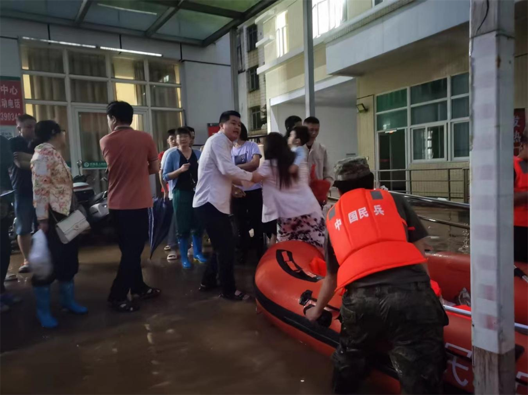 面对绥江水位逼近历史峰值(54.79米)的特大汛情,救援工作刻不容缓,怀集县人武部迅即反应,紧急集结民兵队伍,在恶劣天气下,迅速领取装备,拖引冲锋舟、橡皮艇,火速奔赴抗洪一线。第一梯队30人紧急驰援该县幸福街道重灾区。当道路被深水阻断时,民兵们果断地卸下舟艇,毫不犹豫地涉水推舟前行;面对泥泞断树,他们肩扛橡皮艇小跑突进近1公里,争分夺秒地转移受困群众。
