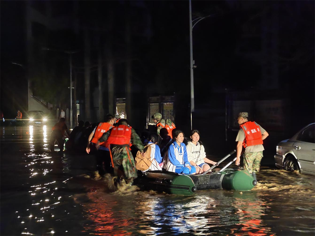 当任务完成,民兵撤离之际,获救的学子们自发聚集在宿舍阳台,纷纷点亮手机灯光。深沉的夜空中,两千余人齐声高唱《强军战歌》,激昂的歌声在洪水退却的校园里久久回荡,这一场面感人至深且震撼人心,这是对连续奋战的“迷彩绿”最真挚、最震撼的敬意与谢意。