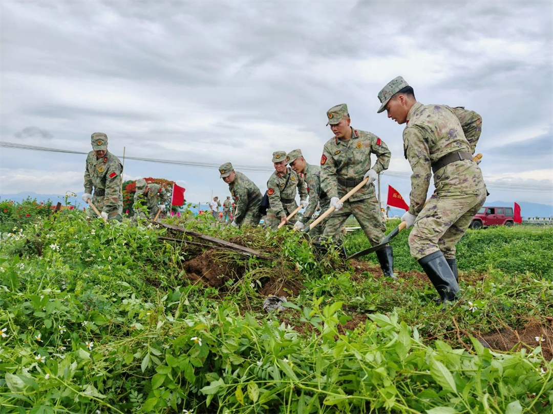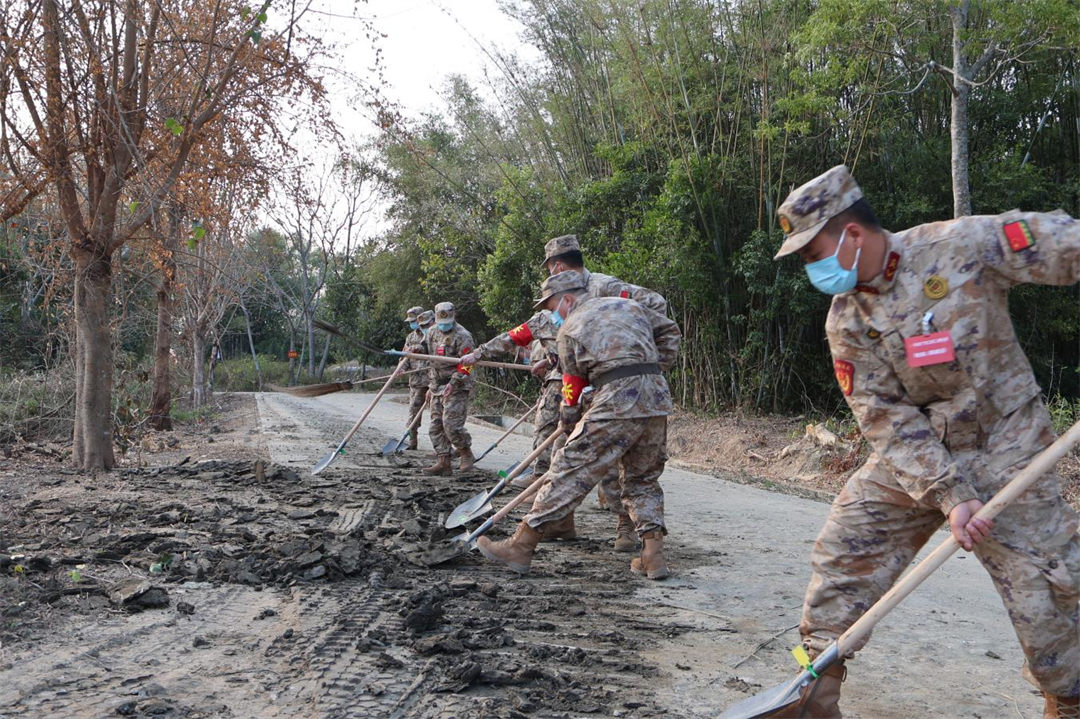 强有力的综合保障支撑着高强度建设。宣传组实时挖掘事迹,卫勤组备足药品。飘扬的连旗和标语持续激发着干劲。驻地村民深受感动,主动烧热茶、借出电动车、协助标记。村民们更在村口挂起“肇湛相连、军民同心树”横幅。全体同志拧成一股绳、攒着一股劲,高标准、高质量完成建设任务,回报村民的信任与厚爱,为打造全省示范样板树立了标杆。