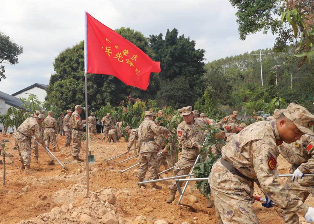 当迷彩服与生态绿在这片红土地上交相辉映,大家看到的不仅是树苗成行,更是民兵队伍在生态文明战场上的冲锋姿态——他们用迷彩服映绿山河,用战斗力播种春天,为绿美肇庆建设树立了“军民同心、绿富同兴”的鲜活样板。
