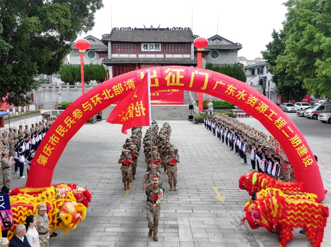 △肇庆民兵擎旗“出征”,参与环北广东工程二期建设。