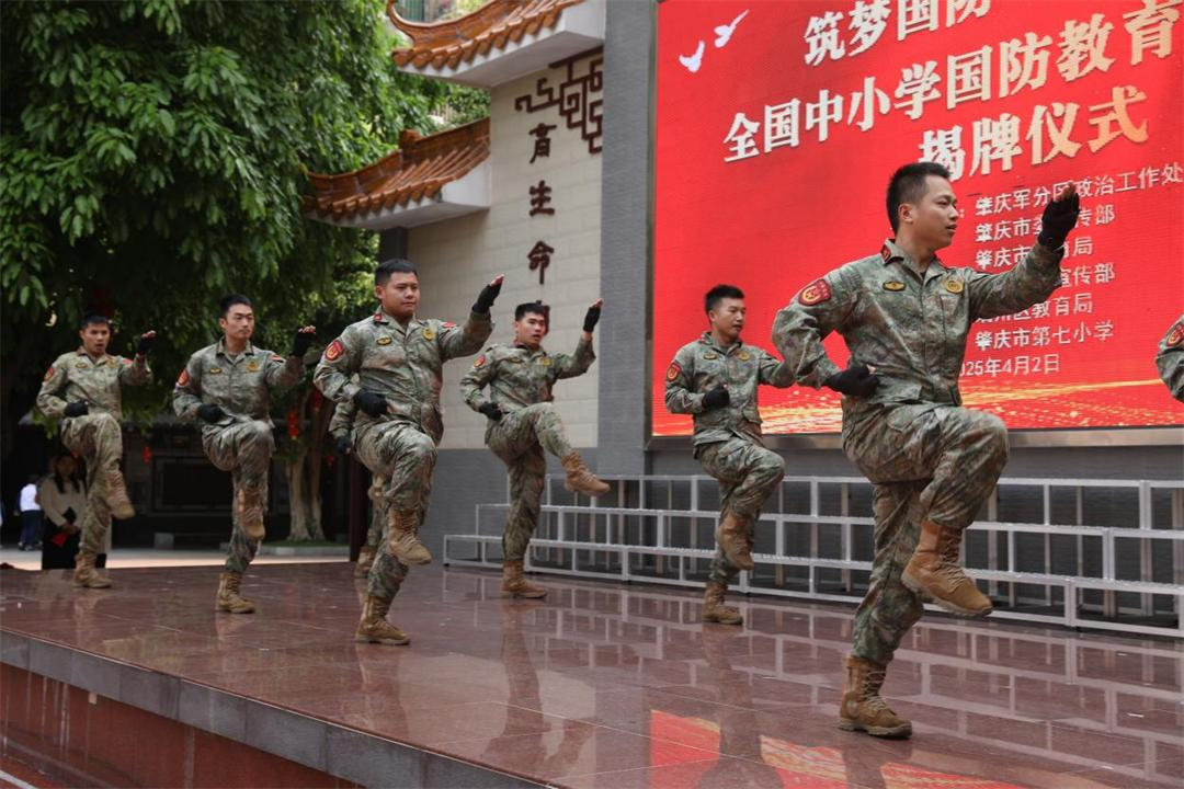 “以前觉得军人只是站岗放哨,现在才知道要学这么多本领!”在肇庆中学国防教育实践活动中,教官们带来了一场场别开生面的国防教育体验,引得同学们阵阵惊呼。在市第七小学的国防教育课上,民兵教练员展示震撼的队列训练、军体拳表演和国防教育公开课,让学子直观感受“拳头力量”,点燃投身国防实践的热情。在市外贸幼儿园隆重举行的升旗仪式上,一只只稚嫩的小手学着民兵叔叔向冉冉升起的国旗敬礼时,爱国主义的种子正悄然生根发芽。